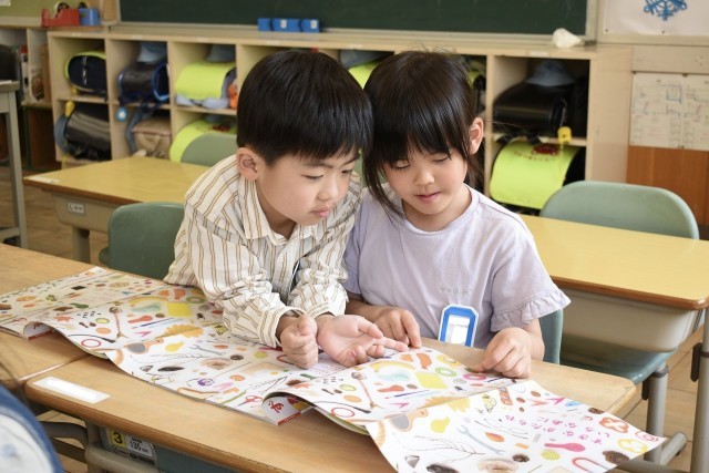 今日から、図工の学習が始まりました。教科書に載っているさまざまなものを見て、形が似ているところや色が似ているところを探しました。ペアのお友達と関わりながら活動することができましたね。
