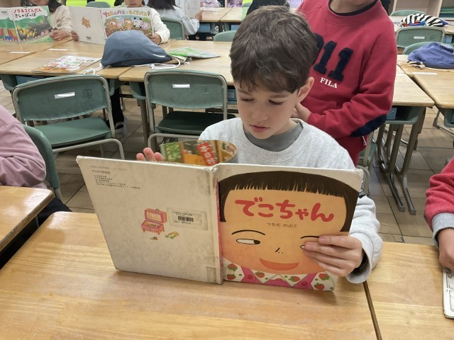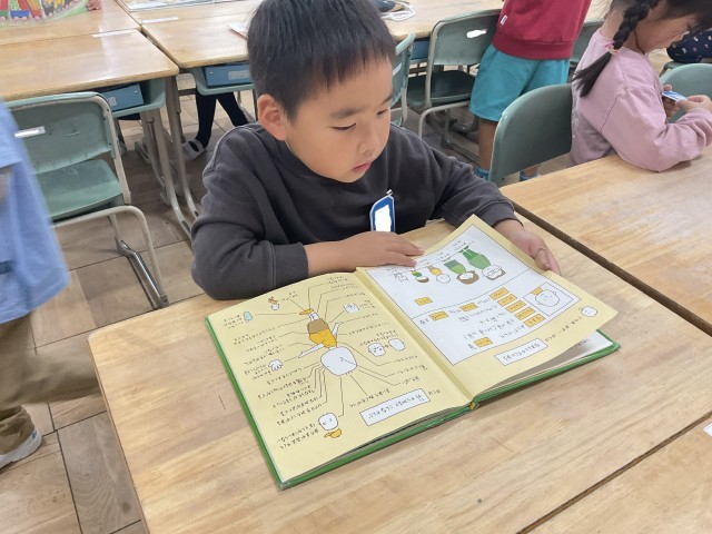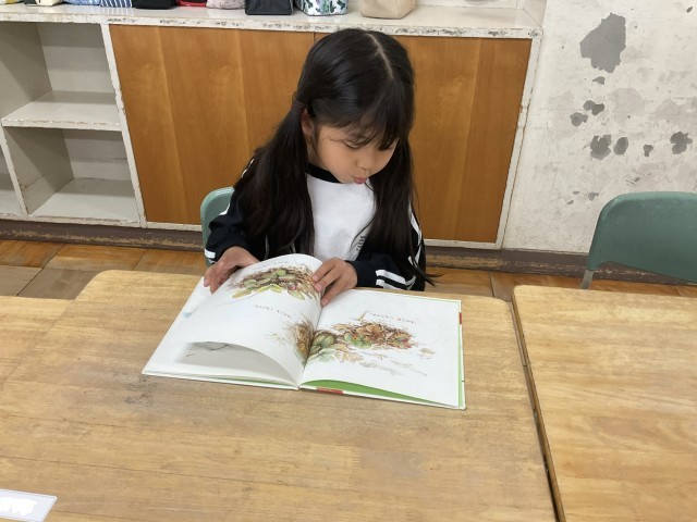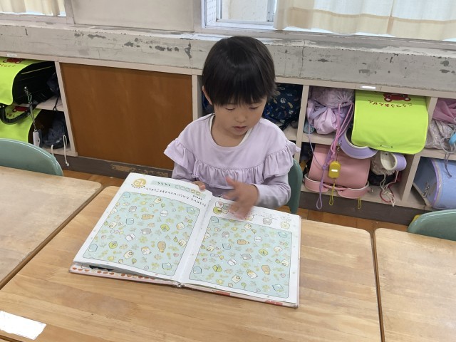 天気が良くない日は、教室にある学級文庫から好きな本を選んで読書をしました。じっくり絵や文字を見て、落ち着いて過ごす姿は立派な1年生でした。今度は、もっとたくさんの本が置いてある図書室に行ってみましょうね!