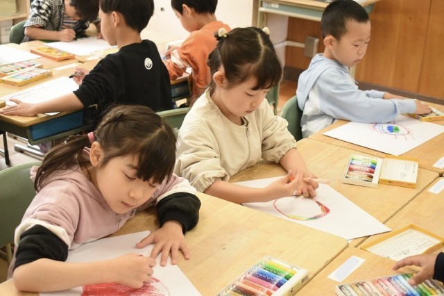 図工の学習では、「わたしのおひさま」の作品をつくりました。クレヨンを使って色を混ぜたり、イメージを広げながら作品を仕上げていくことができました。自分らしさ、自分の表現を大切に楽しんで学習していきましょうね!
