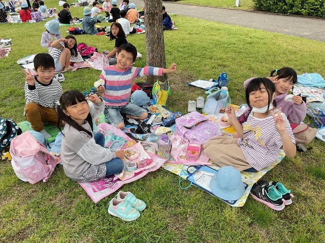 お弁当を食べてたくさん遊びました。みんなで食べたお弁当おいしかったね!!
