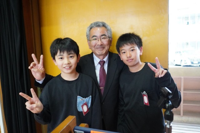 終わったあとには、校長先生からお褒めの言葉をいただき記念にパシャリ。