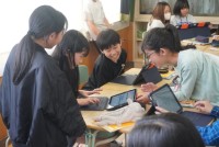 音楽の授業で「ラバース コンチェルト」の学習をしています。楽器の響きや曲想とその変化の特徴を感じ取り、グループで交流し合いました。