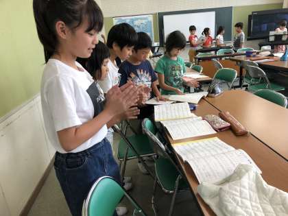 オルガンの伴奏に合わせて、手拍子で演奏しました。それぞれのグループが素晴らしい発表ができました。