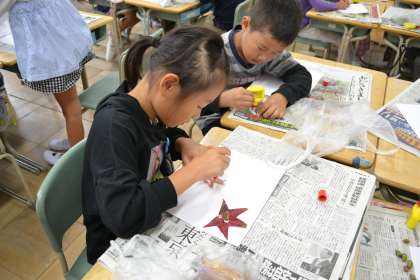 どんぐりや葉っぱなどを使って絵作りをしました。