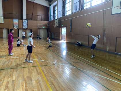 ペアでソフトバレーボールを使ってトスやレシーブの練習をしました。