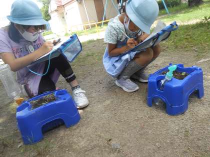 3年生は理科で「たねをまこう」のホウセンカの観察を行いました。「子葉」という言葉を覚え、それがどうなっているか、触ったり、測ったりして詳しく観察しました。