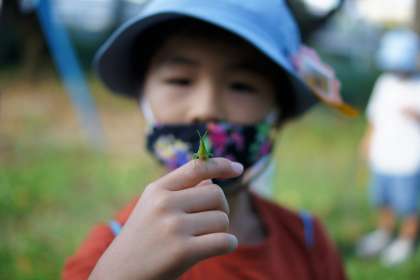 バッタやコオロギなどを捕まえることができ、セミも見ることができ児童はうれしそうでした。