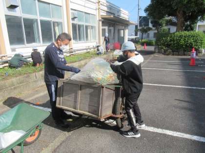 花の季節が終わり、校長先生と6年生で花だんの掃除をして、次の花に備えて準備をしました。