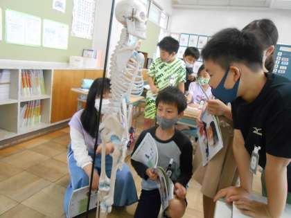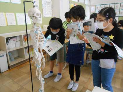 自分のからだや模型を使って、からだの動き方を確かめました。