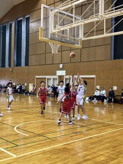 勤労センターで男子準決勝戦が行われました。小牧南小学校が対戦相手です。前半から一進一退の緊迫した試合展開です。第2ピリオド終了時で15-18。僅差を第3ピリオドで逆転し、決着は最終ピリオドへ。逆転、同点と終了直前までどちらが先にゴールするのか?結果は30-34。得点が入る度にタイムアウトが取られるなど、残り1分は、一瞬も目が離せない激闘でした。