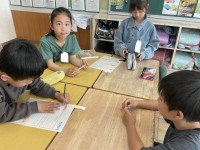 原っ子作品展では、各学年の図工・書写作品を見てまわりました。