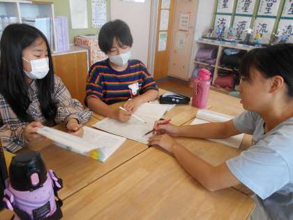 国語では、「やまなし」を勉強しています。本文には、難しい表現がたくさん出てきます。絵や図で表しながら、様子を読み深めることができました。