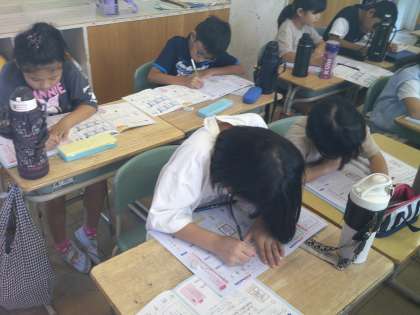字の大きさや配列に気をつけてよい姿勢で丁寧に書いています。