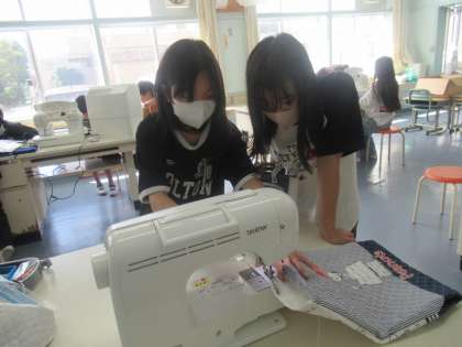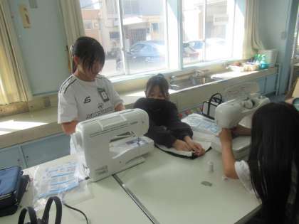 家庭科のトートバッグ作りでは、完成が近づいています。