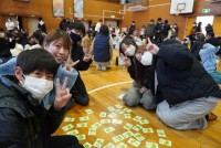明日のしつけカルタ大会に向けて、グループのみんなと練習しました。体を寄せ合い、ハ...