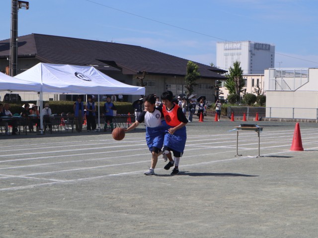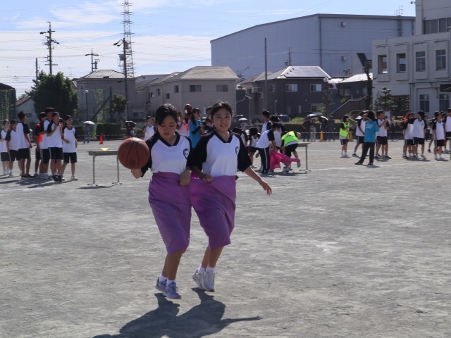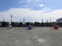 2年生はデカパン競争でした。二人一組で走り、ボールをつないでいきました。