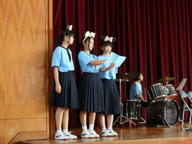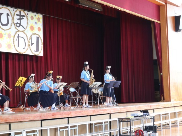 吹奏楽部の発表は、可愛いかぶりものをしての演奏でした。