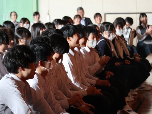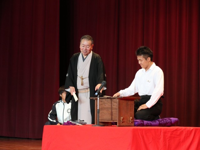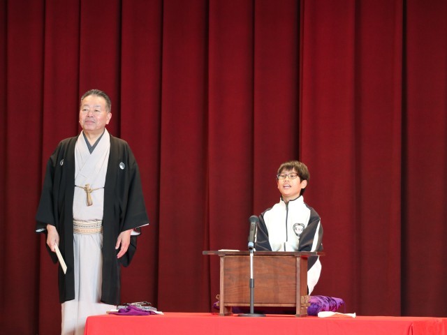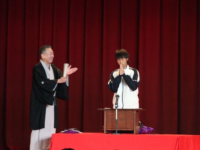 最後に3名の生徒が上方講談を体験しました。ちょっとアドリブもいれ、とても上手に講談をして大変盛り上がりました。