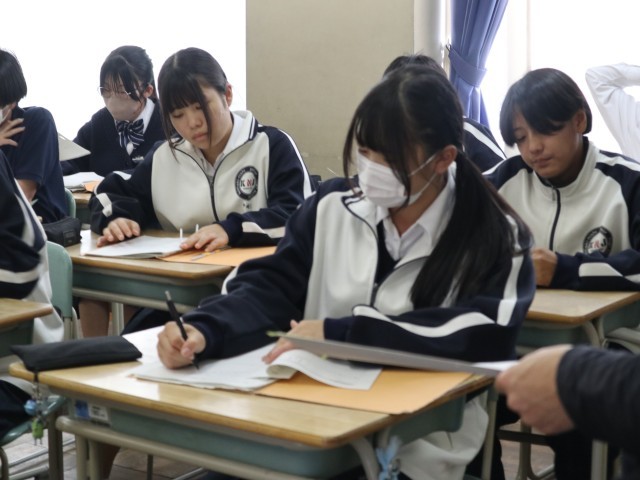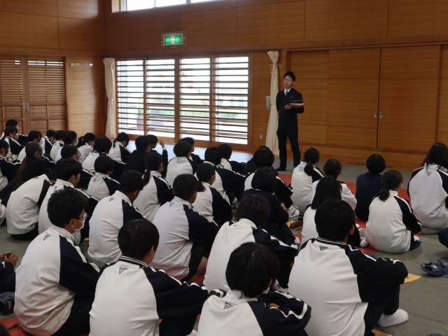 担当の先生から、明日からの職業人での心構えや身だしなみなどのお話を聞きました。話を聞く姿勢は大変すばらしいものでした。