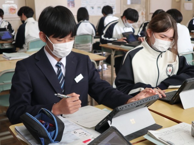 わからない単語が出てくるとすぐにタブレットで調べたり