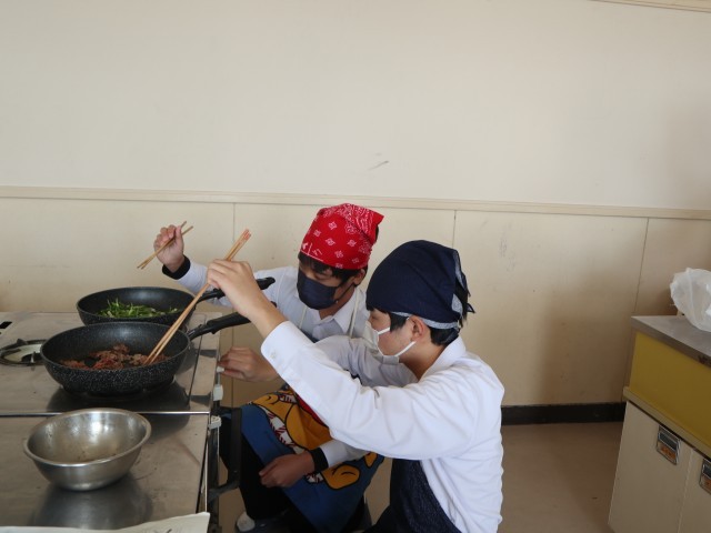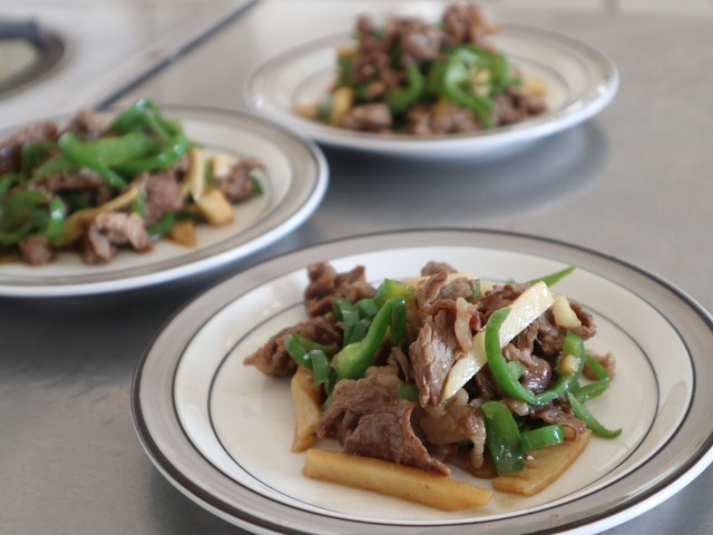 3年生の調理実習では、青椒肉絲(チンジャオロース)を作りました。