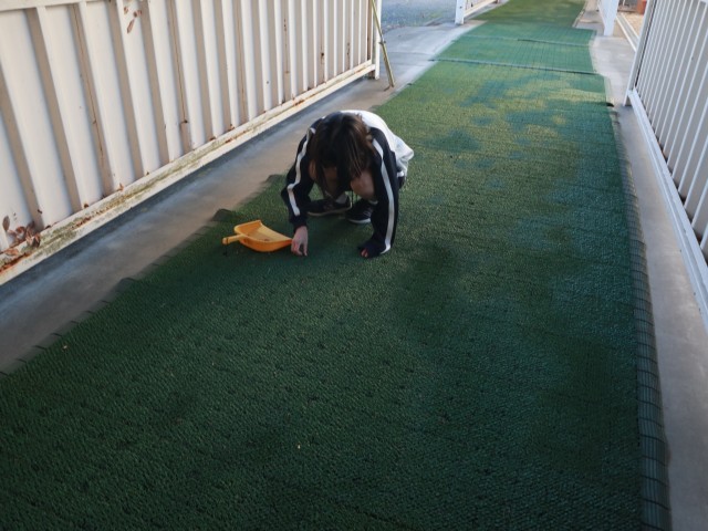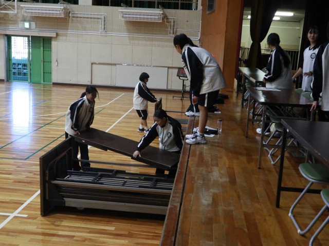 女子バレー部の1年生は一生懸命清掃と準備を進めていました。黙々と準備する姿がとても素敵でした。