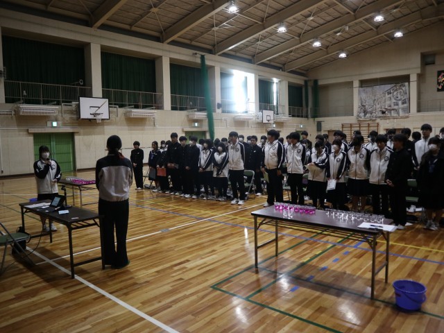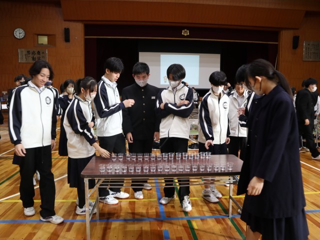 感染症に見立てた色水実験では、約半数の生徒の水がピンク色に染まりましたが、感染者と直接かかわった人はわずか10人ほどでした。