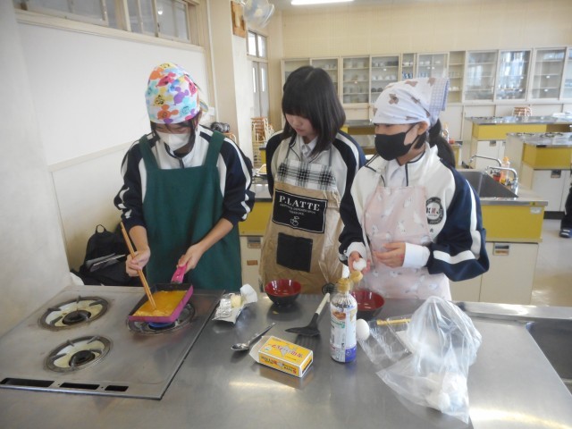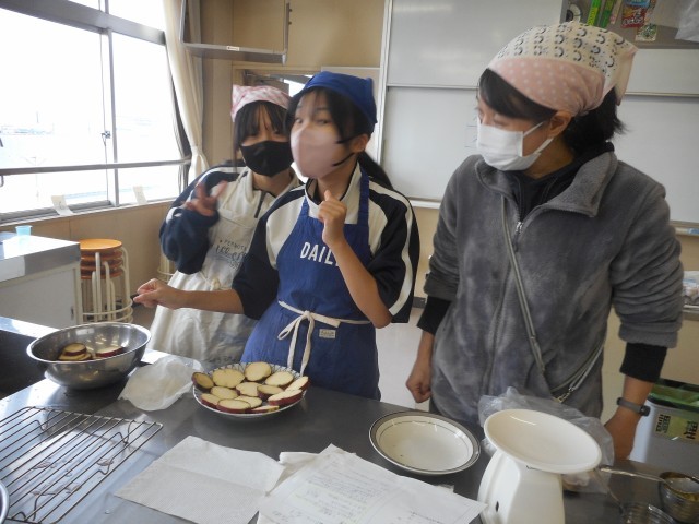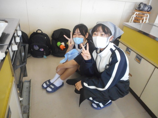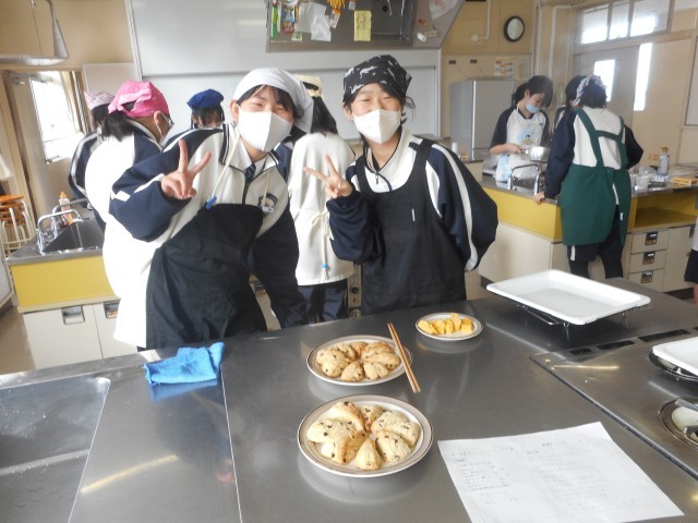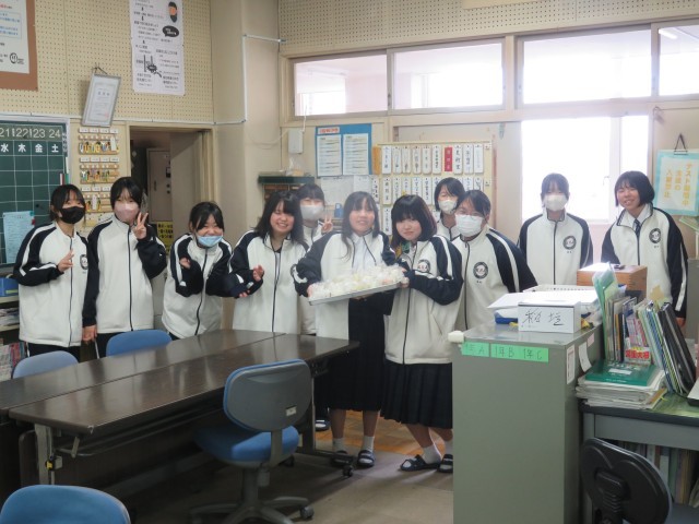 家庭部で3年生を招いて「お別れクッキング」を行いました。ミニマフィンや鬼まんじゅう、スコーンやスィートポテトなどのスィーツ系だけでなく、三ツ渕小学校からいただいたお米でおにぎりも作りました。おにぎりは、野球部とテニス部、職員室にも差し入れし、みんなでおいしくいただきました。最後は、先輩へお礼の言葉とプレゼントを贈り、先輩からも話をしてもらい、会を閉じました。寒い1日でしたが、心温まるひと時となりました。
