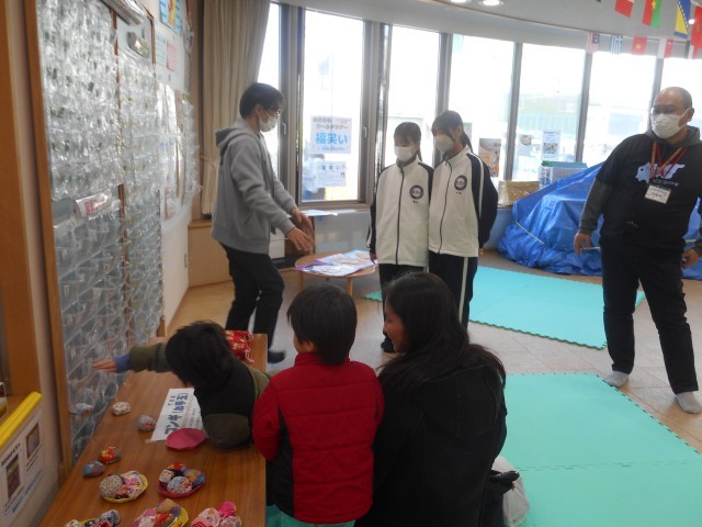 ゆう友せいぶで「第15回ニューイヤーフェスタ」が開催され、ジュニア奉仕団員たちもお手伝いとして参加しました。館長さんから説明を聞いた後、それぞれ分かれて児童館のブースのお手伝いをしたり、炊き出しのお手伝いをしたりしながら、一緒に楽しむことができました。
