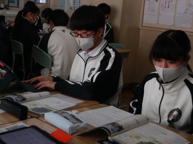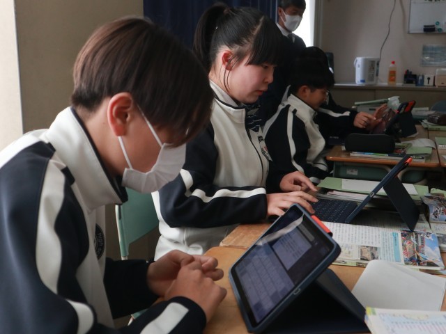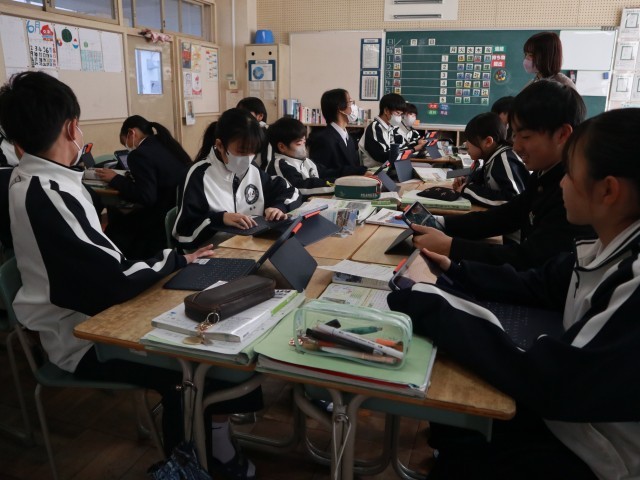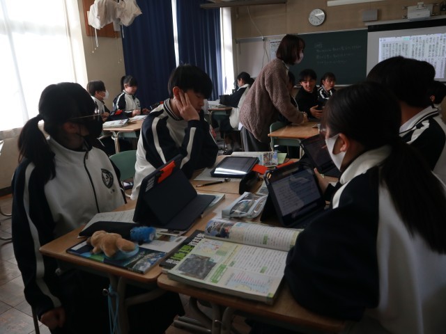 個人で疑問に思ったことを調べ、過去の災害から学び、グループで共有し合っていました。