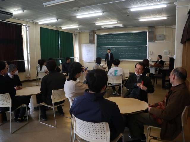 講師の先生をお招きし、各クラスの授業の様子を見ていただいた後、「安全安心な学校づくり」について、話し合いました。