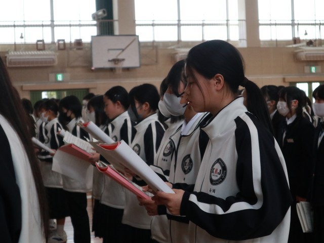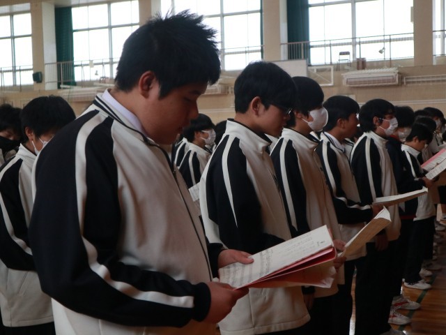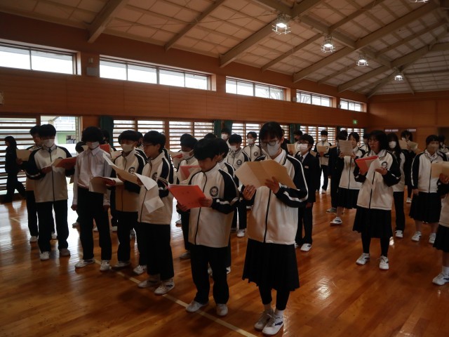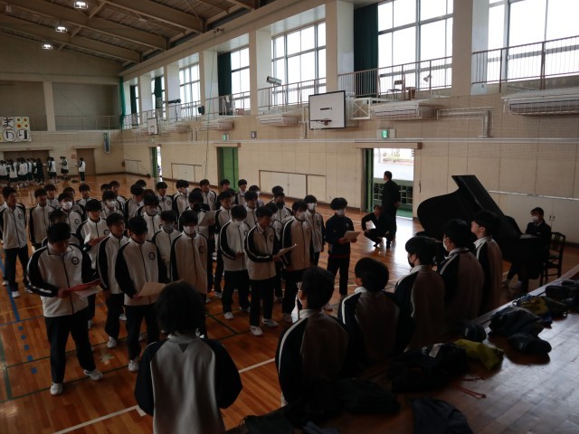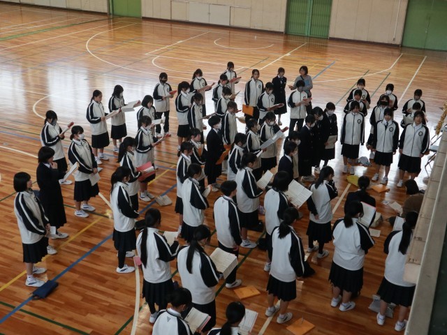 1、2年生合同の卒業式歌練習が行われました。今回はパートに分かれて練習してから、全員で合わせました。大きな歌声が体育館に響きました。