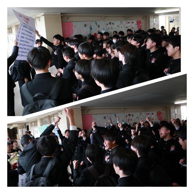 この校舎で仲間と先生たちと過ごしたことを思いながら、最後は元気で仲のいい、3年生らしく盛り上がりました。