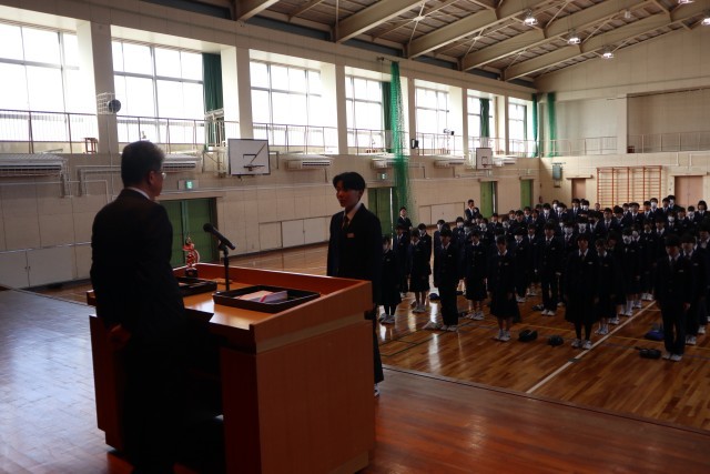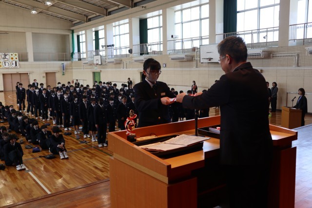 認証式では新たにR8年度前期生徒会役員が認証されました。4月からこの西中学校をお願いします。