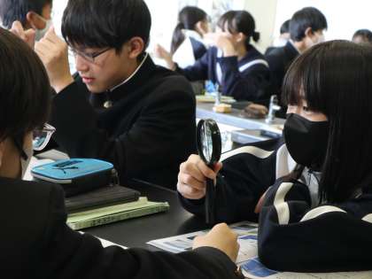 虫眼鏡を離して見たり、近くで見たりしながら実験していました。