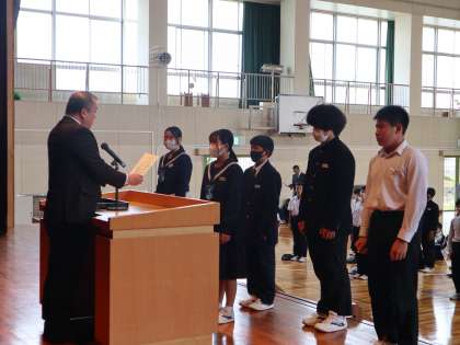 前期学級役員等認証式 2 公開日 2024/04/26 更新日 2024/04/26 行事ニュース 学級役員及び、学年生徒会代表の認証の後、 生徒会長のあいさつがありました。 認証された生徒たちは学校・学年・学級の代表として、より良い学校生活が送れるように頑張ってほしいと思います。 いいね(0)