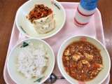 <献立> マーボー豆腐・ぎょうざ・中華炒め・麦ごはん・牛乳