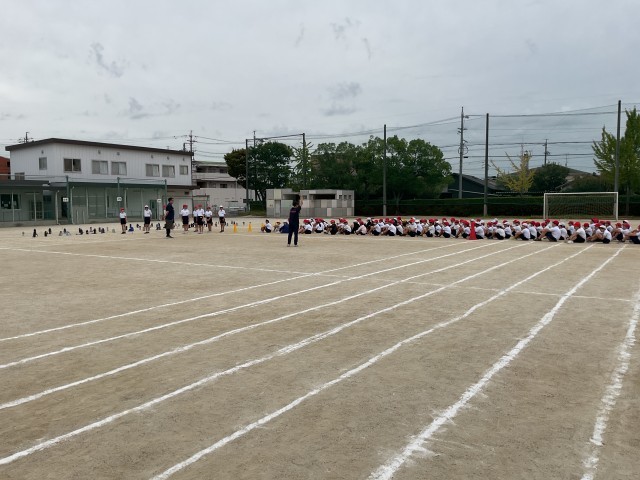 運動会に向けて学年練習をしています。実際に動いてみることで課題が見つかり修正ができます。