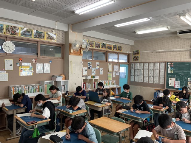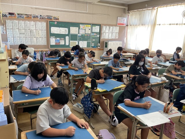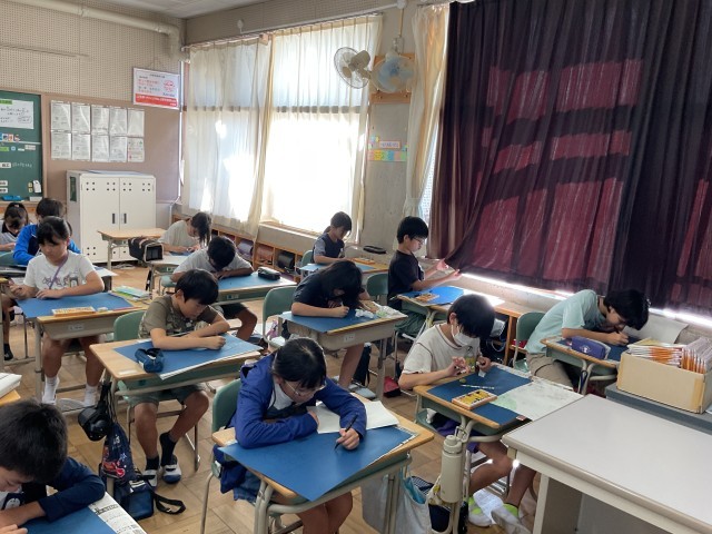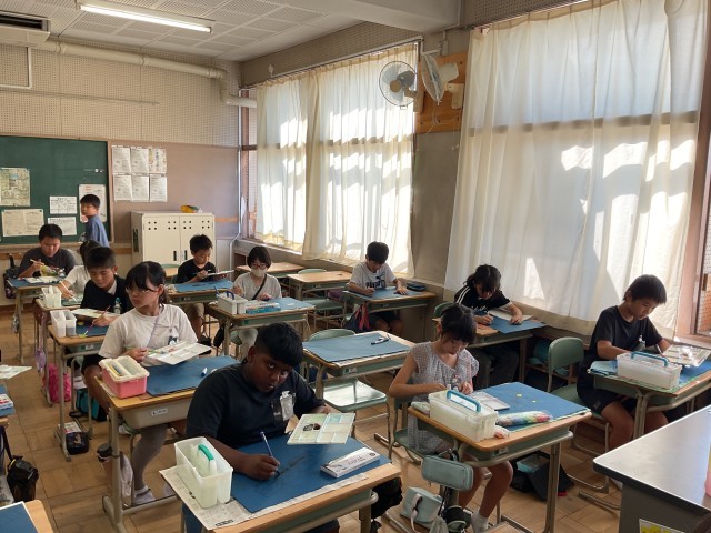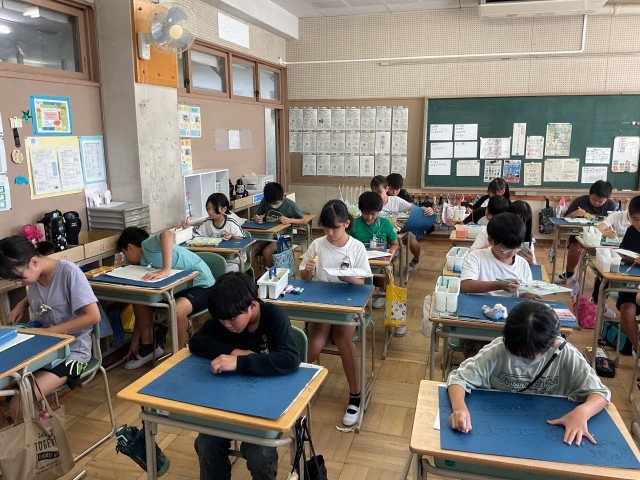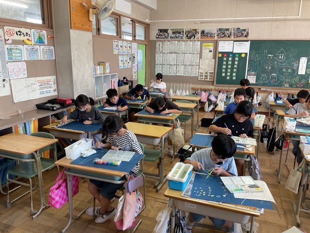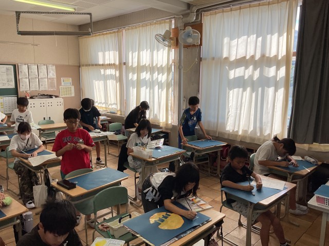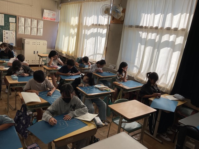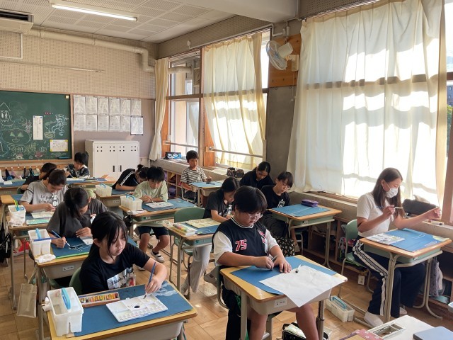 物語を聞いてイメージした場面を描きます。これまでに学習した技法も使い自分の思う銀河鉄道の夜を完成させます。