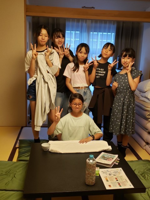 旅館に到着しました。荷物を整理し、次の活動に備えています。