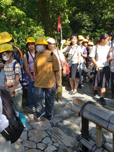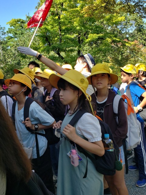夕佳亭、お茶室も見ることができました。バスガイドさんの話を聞いて、しっかり学習しました。