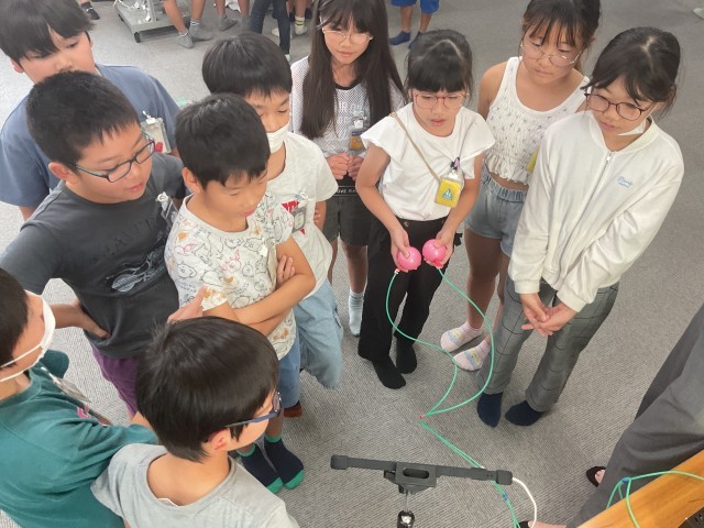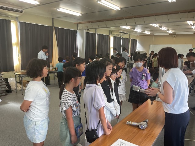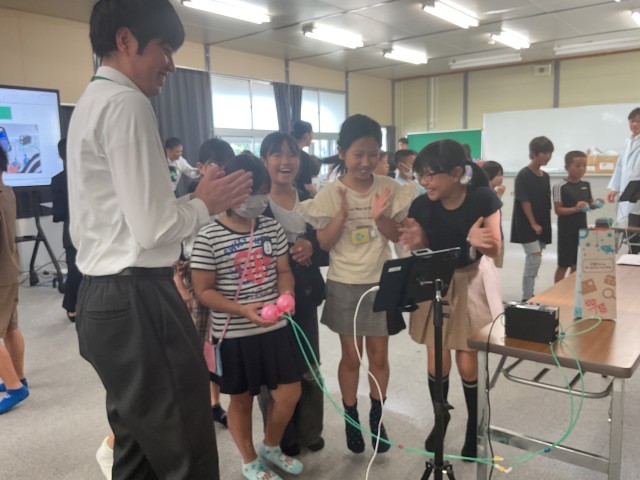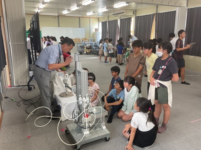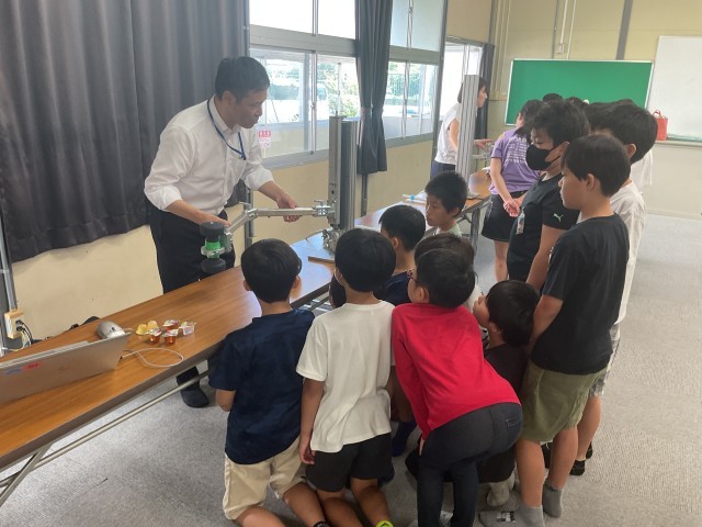 環境に関する授業の一環で地域にある企業のCKDの方々に来ていただきました。空気を使った機械を実際に体験し、それぞれのブースから歓声が上がっていました。空気の凄さを体感し、環境を考えるきっかけになったと思います。
