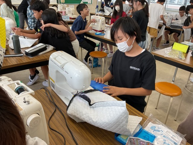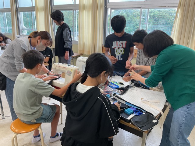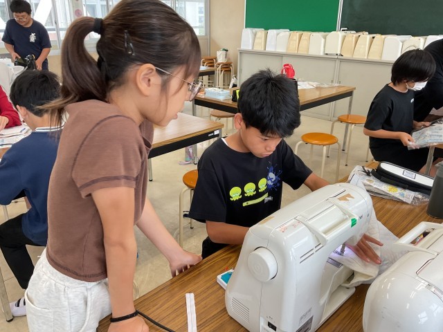 在校生・卒業生の保護者の方による「学習サポーター」の方に入っていただき、トートバッグ作りを始めています。アイロンやしつけなど、ミシン以外にもやることが盛りだくさんですが、子どもたちは、昨年度のエプロン作りの経験を生かして丁寧に製作を進めています。完成が楽しみです。