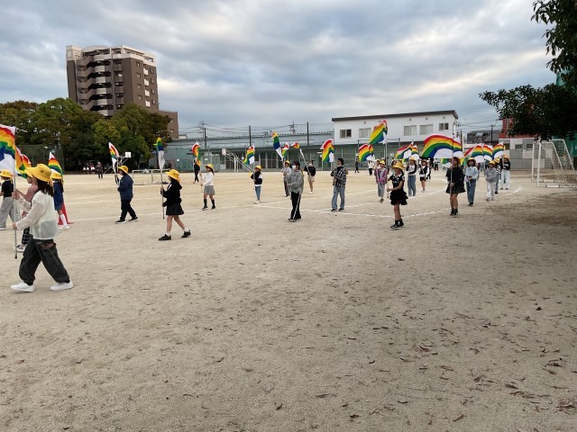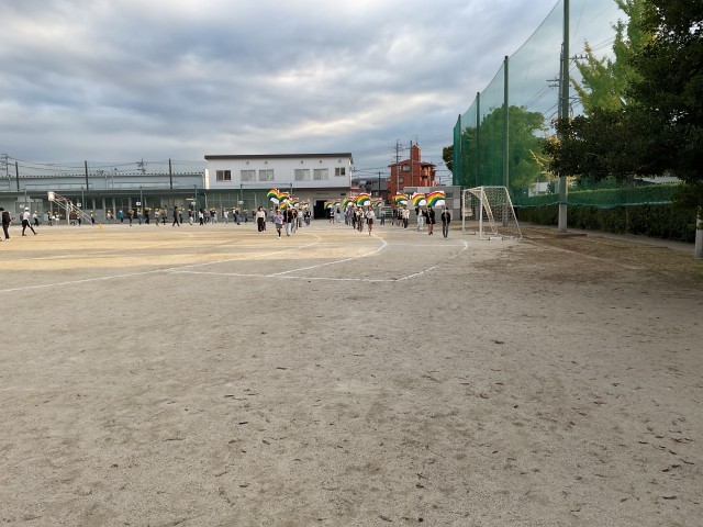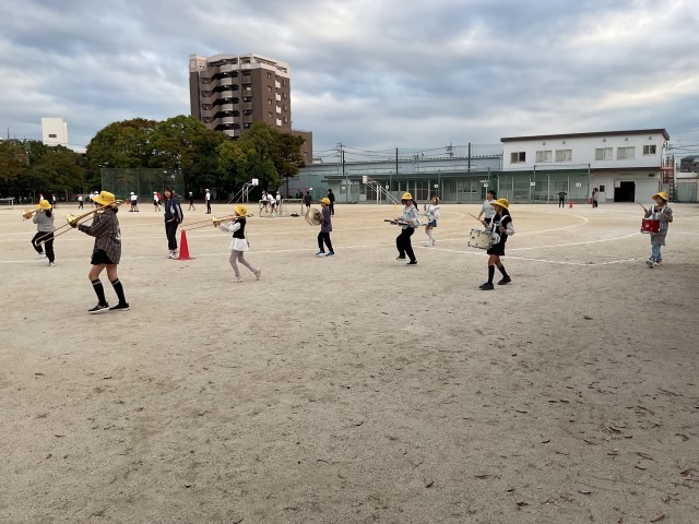 日曜日の市民祭りに向け最終の練習を運動場で行いました。歩くスピードや姿勢など、細かいところまで確認しました。天候が不安ですが、晴れることを祈って日曜日を待ちたいと思います。