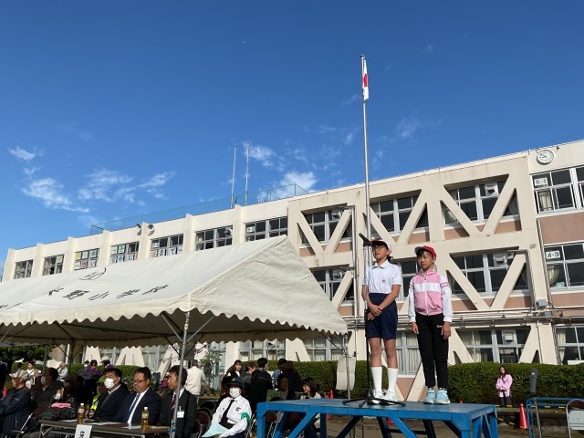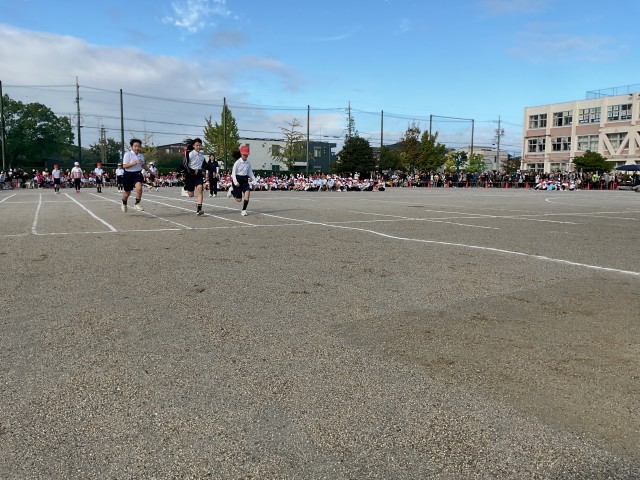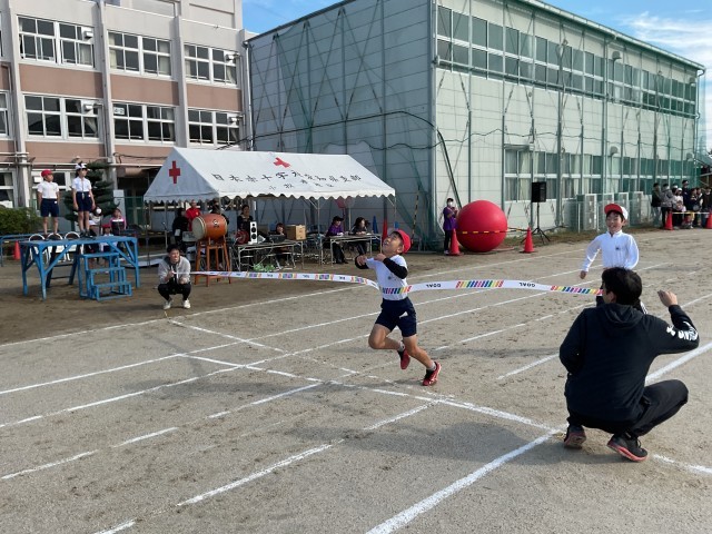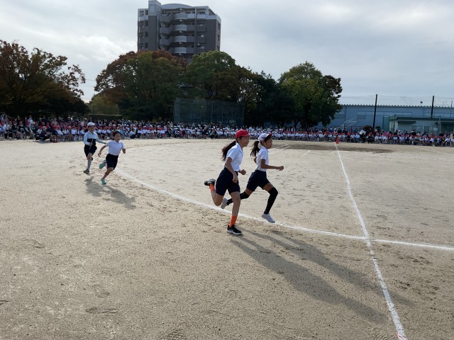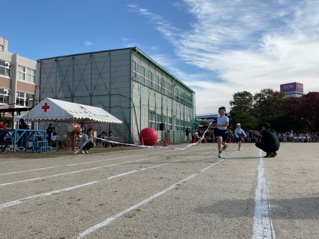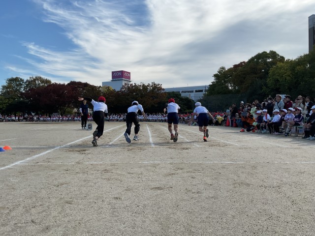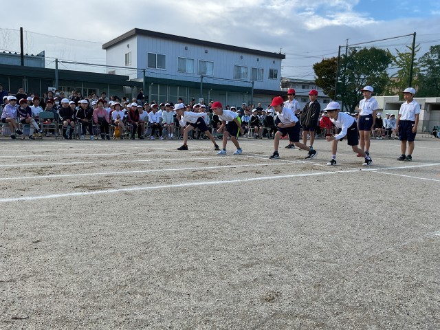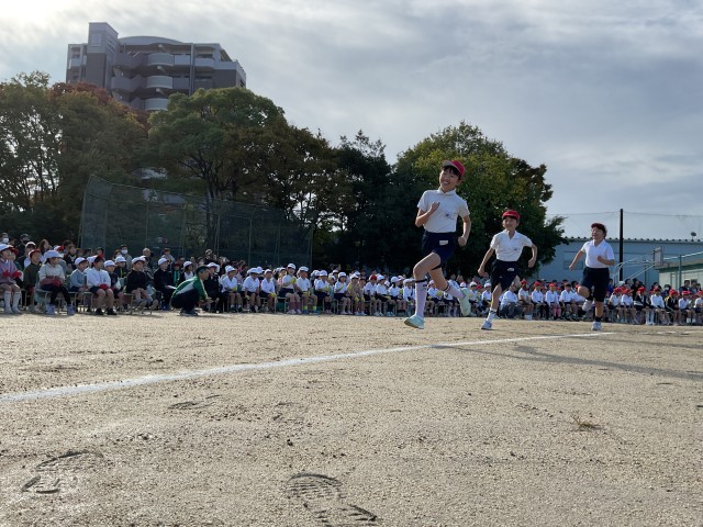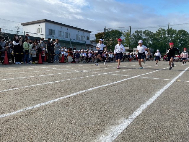 運動会のプログラム1番は4年生の徒競走でした。最後まで力一杯走りました。