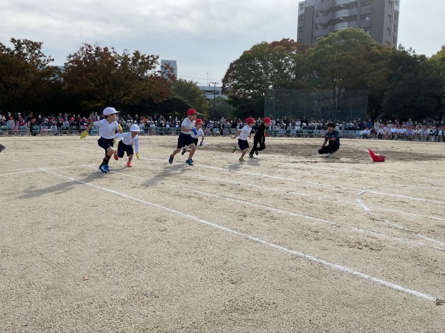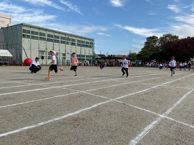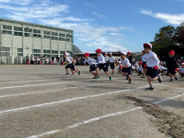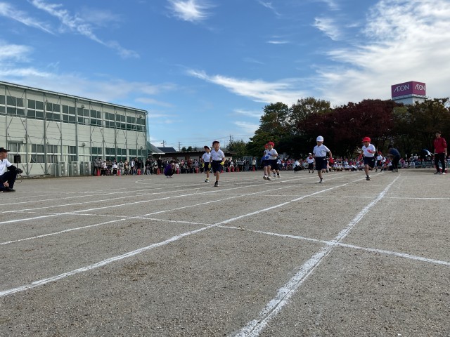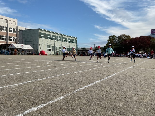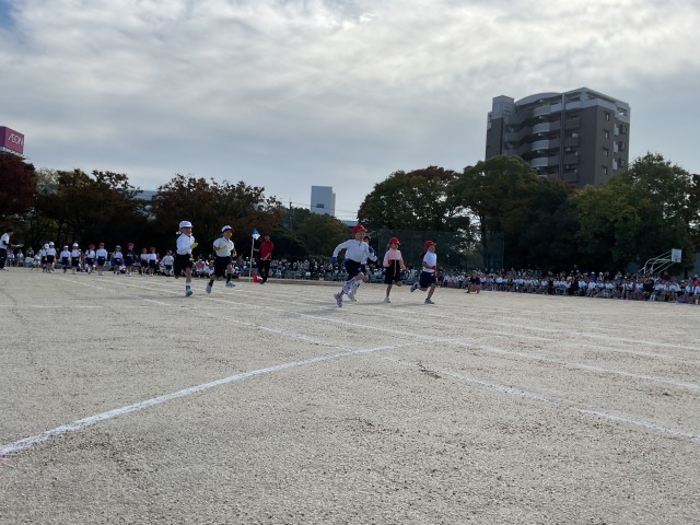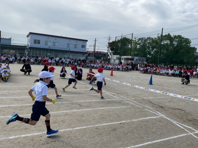 入学して初めての運動会。ゴールまで全力で走りました。