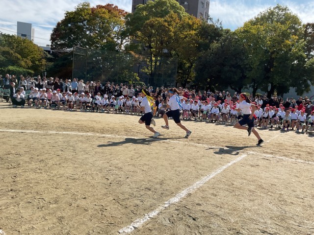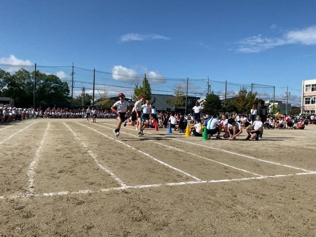 6年生はクラスで心を1つにバトンをつなぎました。一生懸命走り、一生懸命応援し、一生残る思い出となりました。