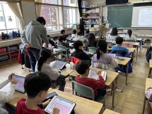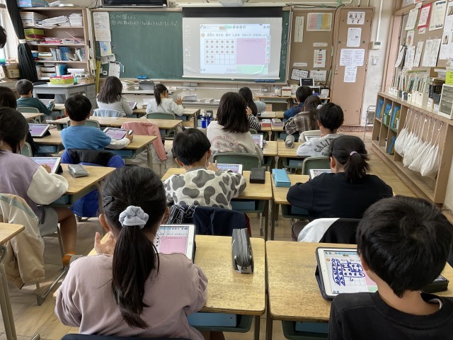 数のまとまりを見つけて、いくつあるか求めます。どんなまとまりにするといいのかな?タブレットの図を使って自分の考えをまとめました。友だちはどんなふうに考えたのかな?考え方を聴いてみましょう。