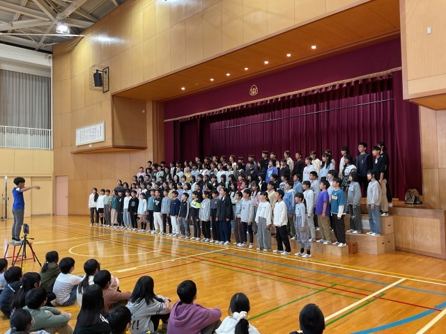 先週参加した市の音楽会で歌った2曲を全校児童の前で披露しました。歌声だけでなく、口を大きく開けて一生懸命歌う6年生の姿から何かを感じてくれたことと思います。