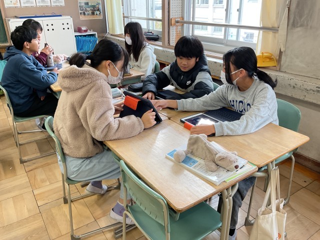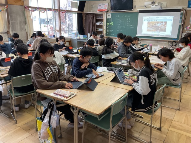 発電の仕組みについて調べていました。私たちの暮らしに欠かすことができない電気はどのようにして作られているのか、発電方法によるメリットやデメリットはどのようなことがあるのかを調べ、中間発表しました。電気がなかったらどのようなことが起こるのか、自分たちの生活に絡めて考えていきます。